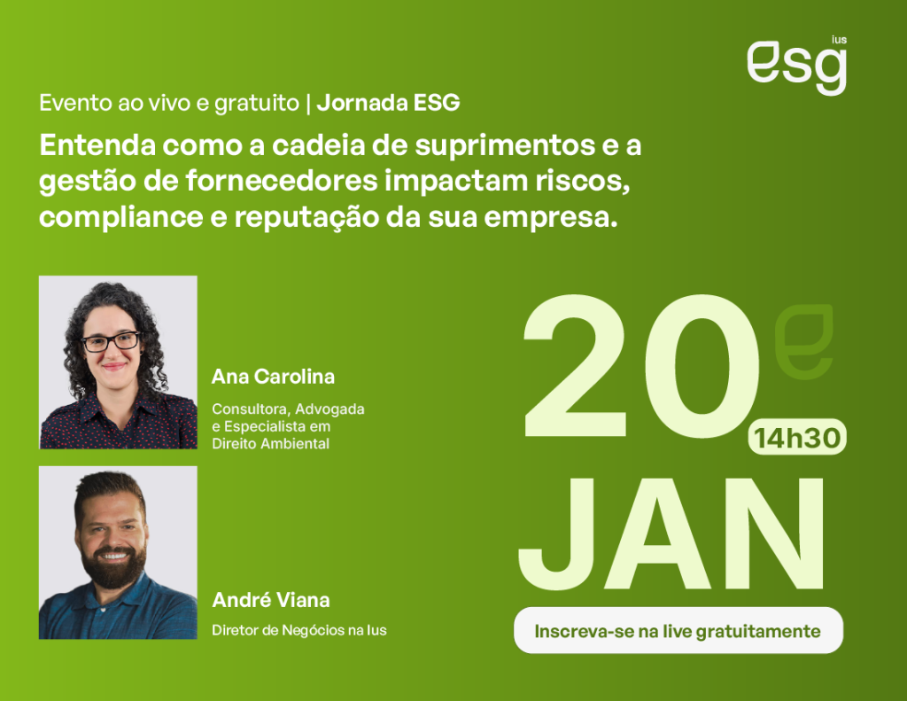 Se você quer entender, na prática, como estruturar uma cadeia de suprimentos mais eficiente, segura e alinhada ao ESG, convidamos você a assistir à live sobre Cadeia de Suprimentos e Portal de Fornecedores. Durante o encontro, especialistas vão abordar os principais desafios da gestão de fornecedores, o papel do portal na mitigação de riscos, no fortalecimento do compliance e na transparência das relações comerciais, além da importância das cláusulas contratuais para garantir conformidade e sustentabilidade. A live é uma oportunidade para aprofundar o tema, esclarecer dúvidas e obter insights estratégicos que podem ser aplicados diretamente na gestão da sua empresa. Clique no banner abaixo e inscreva-se.